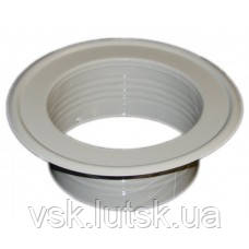 Розета металева фарбована під повітропровід (гофру) для витяжки та систем припливно-витяжної вентиляції. Головне призначення розети – це декоративний елемент. Використовують її головним чином при під’єднанні до шахти гофрованою трубою від газової колонки або витяжки над плитою, за умови відсутності високих температур (до 100°C). Також, при цьому вона виконує декоративну функцію. Не для зовнішнього застосування. Труба проходить крізь розету, а розета вже закріплюється до стіни (шахти). Абсолютно щільного контакту між трубою та розетою – немає. З цієї причини її використовують здебільшого всередині приміщення. Сама розета металева з полімерним покриттям (дуже схожим на емальоване)....